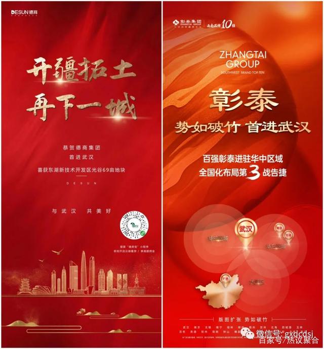 成都德商集团、广西彰泰在地块成交后,分别发布各自公司拿地海报官宣