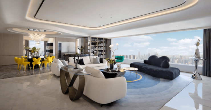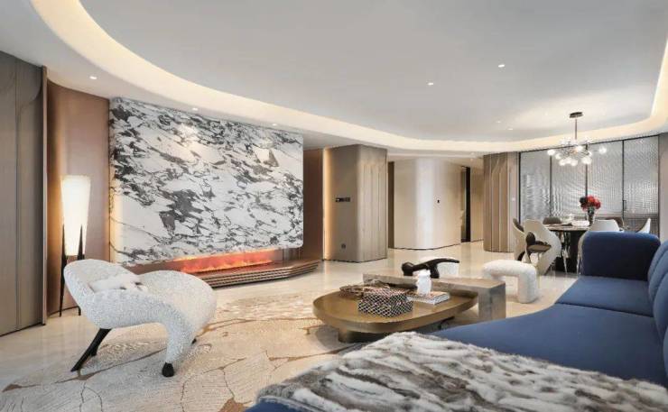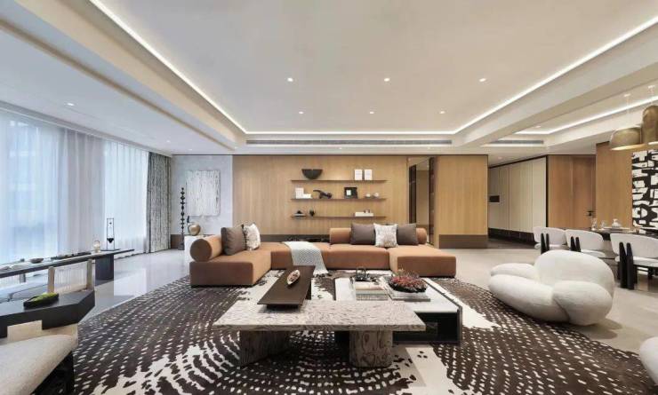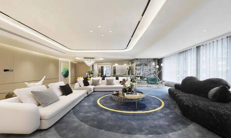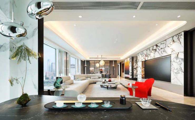 客厅、餐厅、LOUNGE、中西厨、艺术品整体呈开放式布局,公区空间大气灵动。对窗而坐,可以是与自我的对话,一家人的交流,朋友间的欢聚。