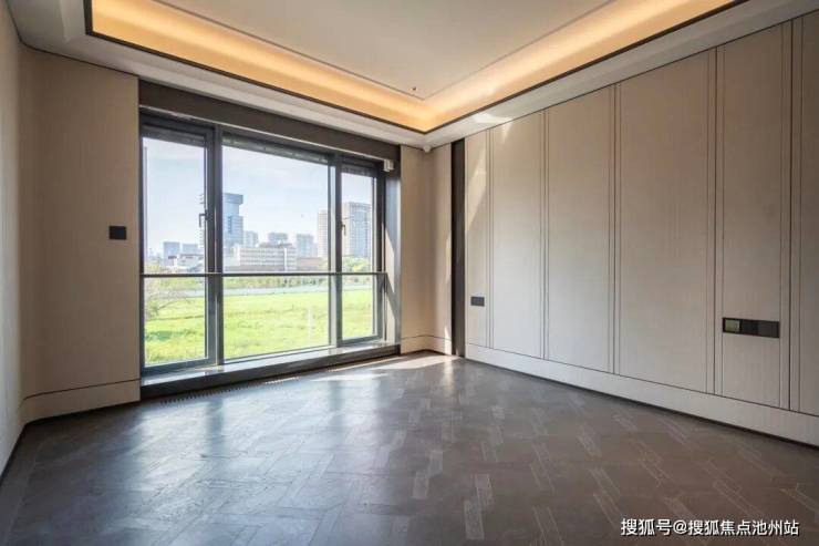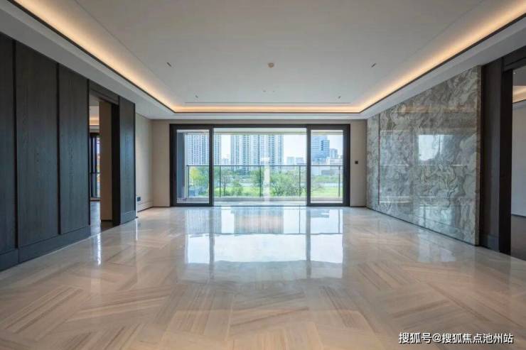 打开户内门往里走,南向开间约18米,南北通透,全落地窗设计,豪宅感十足。