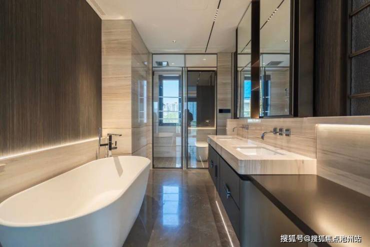 约43平的豪华主卧,顶别人家3个房间的大小,将衣帽区、卫生间、卧室做“三分区”独立设计,极致的享受、私密性拉满。如此阔绰的空间使用和布局,小胖之前多在别墅户型里见到。