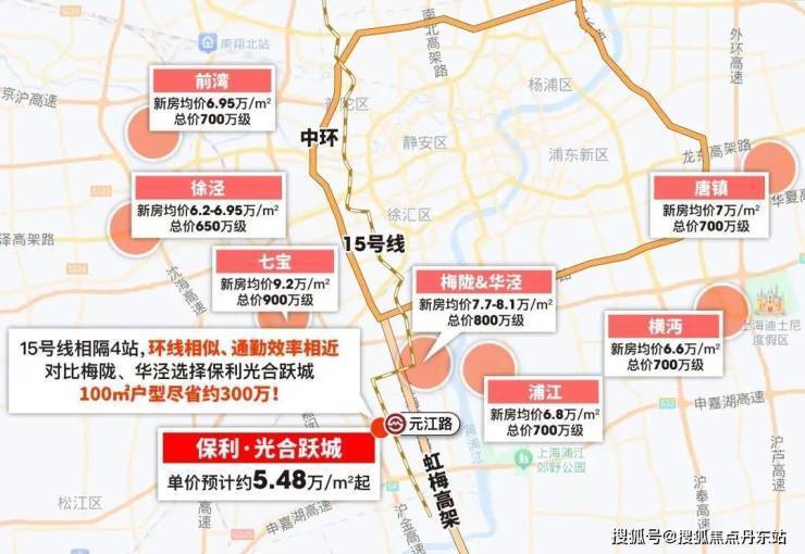自驾的话,项目紧贴虹梅路高架,3个红绿灯即上中环!凭借虹梅路高架的优势,项目其实和华泾、梅陇、七宝处于同一价值环线。如今梅陇、华泾的新房单价都在8万左右,而保利·光合跃城,距离梅陇华泾仅4站地铁,自驾通勤效率与前者相差无几,100㎡户型几乎能节省近300万,性价比不言而喻!