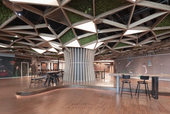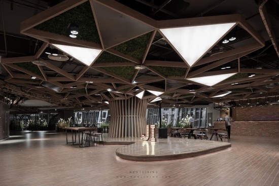 Worldwide BBQ Area是由HHD·Living为沈阳K11艺术购物中心打造的全国排名前列融合全球美食及音乐体验的BBQ烤肉餐厅。开放式的就餐环境,音乐元素的背景壁面,以及异形的超大天花设计,营造出了美食与音乐互动、餐饮与设计交织的空间形态。