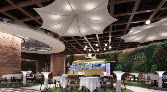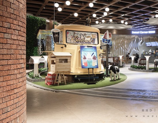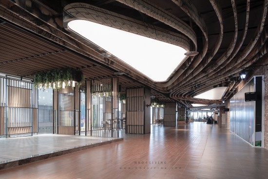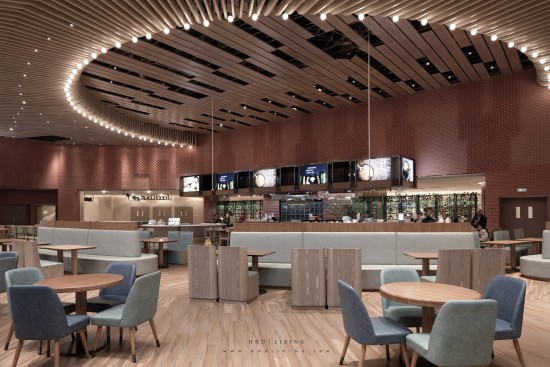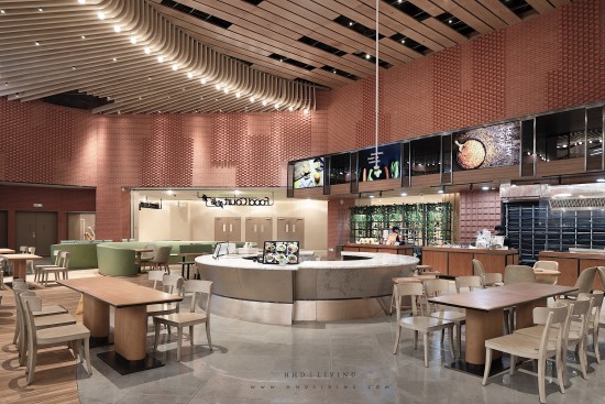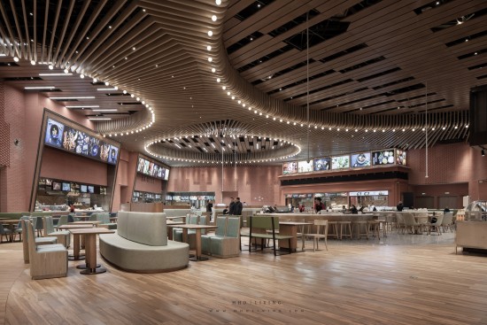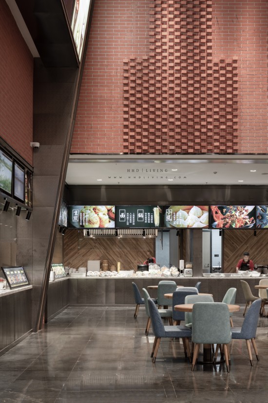 在沈阳K11艺术购物中心中,HHD·Living设计打造了“美食市集”等餐饮区域。红色砖墙的元素同样延伸到了空间中,配合着“大开大合”的开放式餐饮档口及座位区,营造出了大众化,极具包容性的就餐环境。