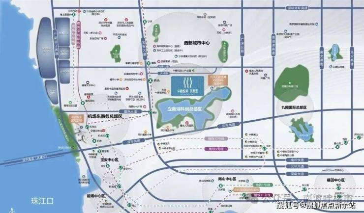 项目位于深圳市.宝安区.福海街道.立新湖片区,稔田社区大洋路与塘新路交汇处西南侧,北侧一路之隔是中粮凤凰里花苑小区、南侧直线约400米是立新湖水库(立新湖公园),距离11号线桥头站D2出口步行约650米。项目属性旧改用地,分两期开发,目前开发的是二期。