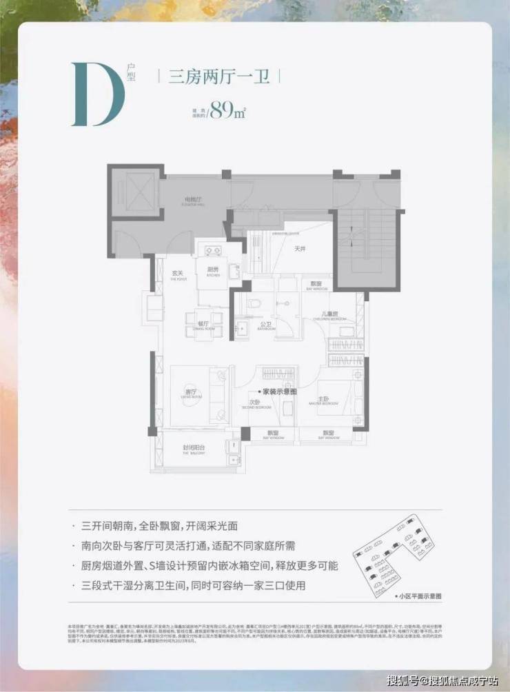 建面约89平 3房2厅1卫(中间户)