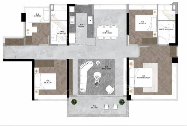 105㎡三房注重居住舒适度,三开间同侧,采光视野拉满;
