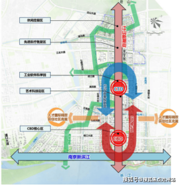 “一轴”即城市中轴定山大街:贯穿3.1平方公里CTD中央科创区与2.4平方公里CBD核心区两大价值高地。规划布局“五区两翼”联动,共同促进产城融合发展。