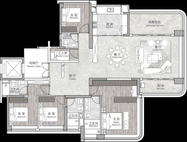 阅境(建面约138m²四房两厅三卫)