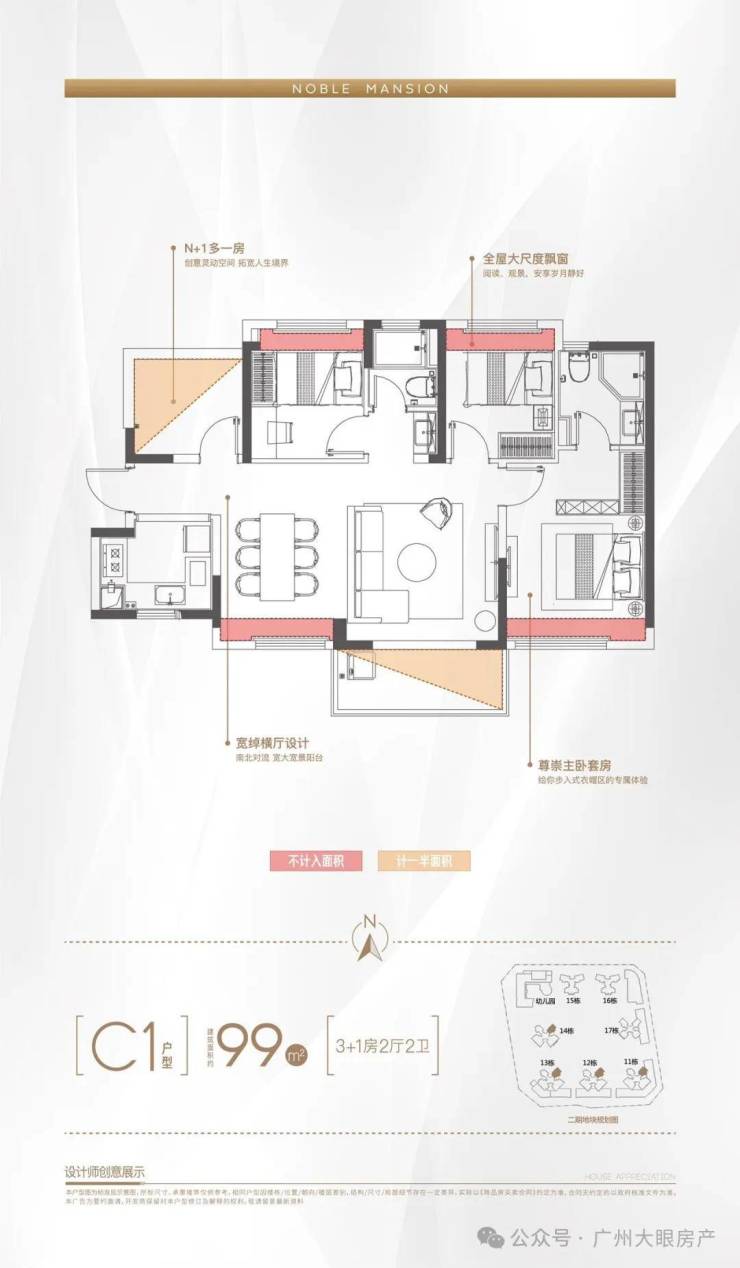 2梯4户、百米楼距、楼王C位、俯瞰6万平园林
