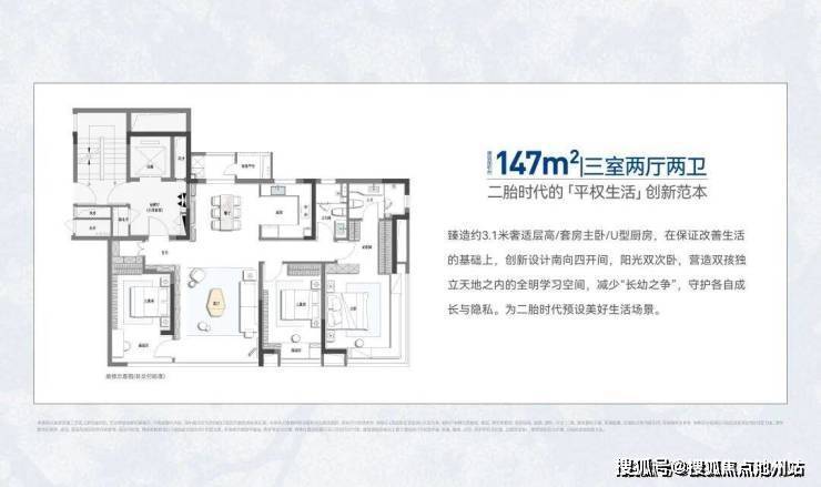 这一次,我们不做“小面积、多房间”的妥协型改善产品,而是从建筑面积约147㎡起步,实现全系大户型的卓越配置。