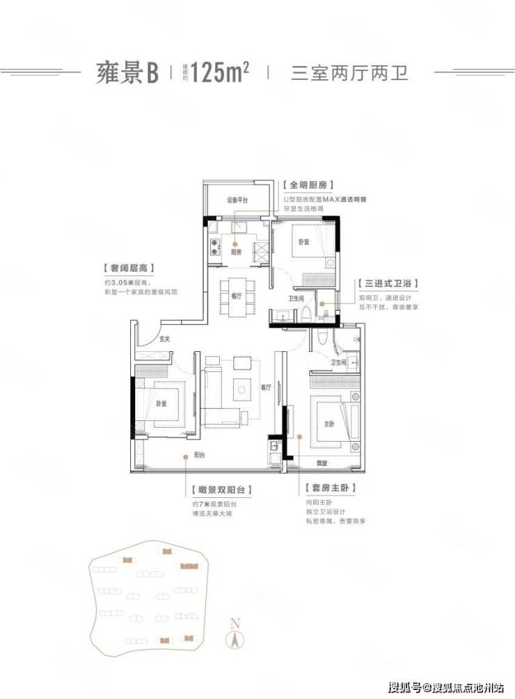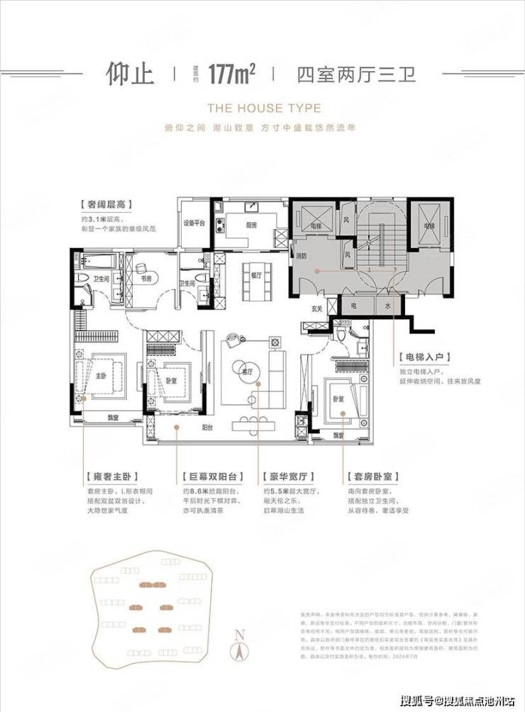楼层状况:楼盘共16栋均为15F、16F、17F小高层产品,户型面积122㎡至177㎡