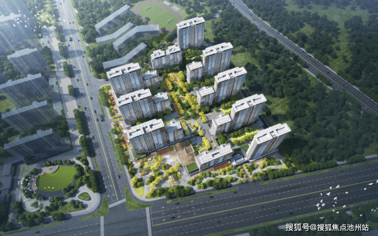 在建筑排布上,10栋南北向住宅中庭嵌入11层洋房,形成“外高内低”的布局。高层住户推窗见绿,洋房业主私享园林庭院。