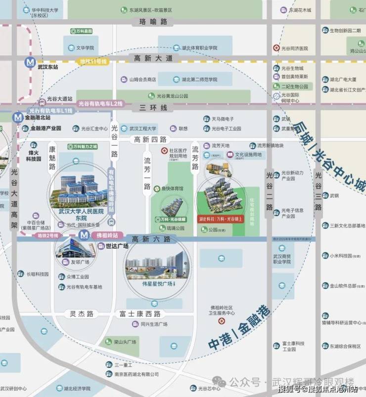 地块位于光谷的金融港板块,高新六路以北、流芳路以东,2号线佛祖岭地铁站东边1公里距离。