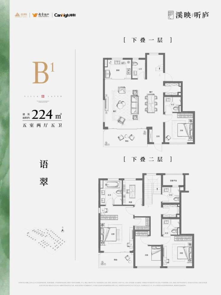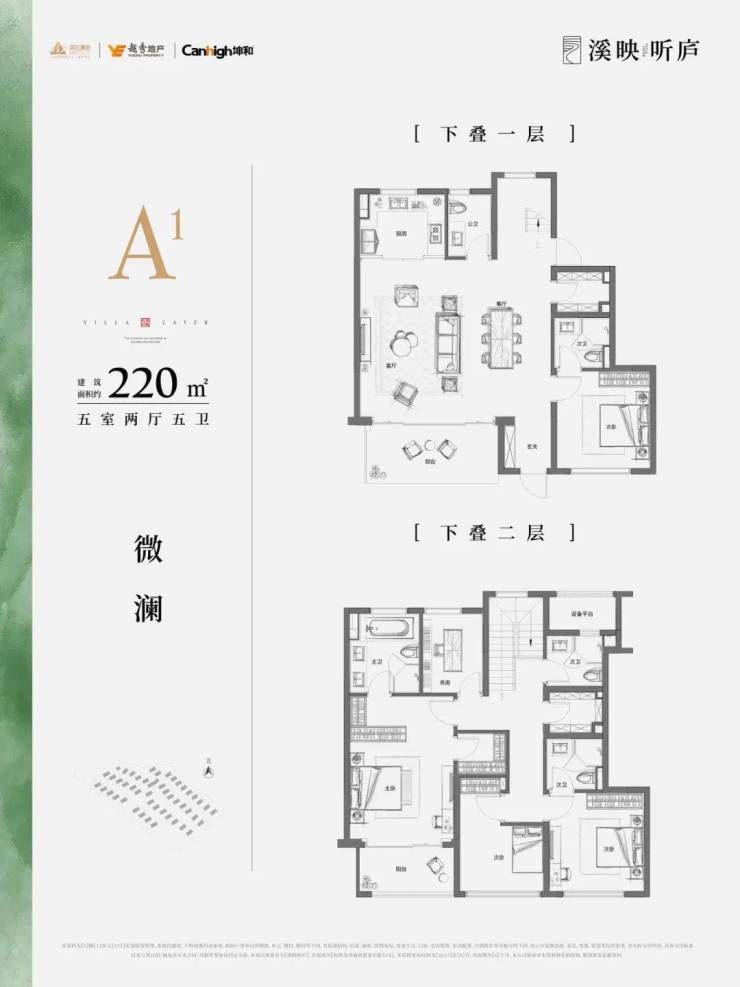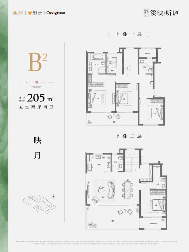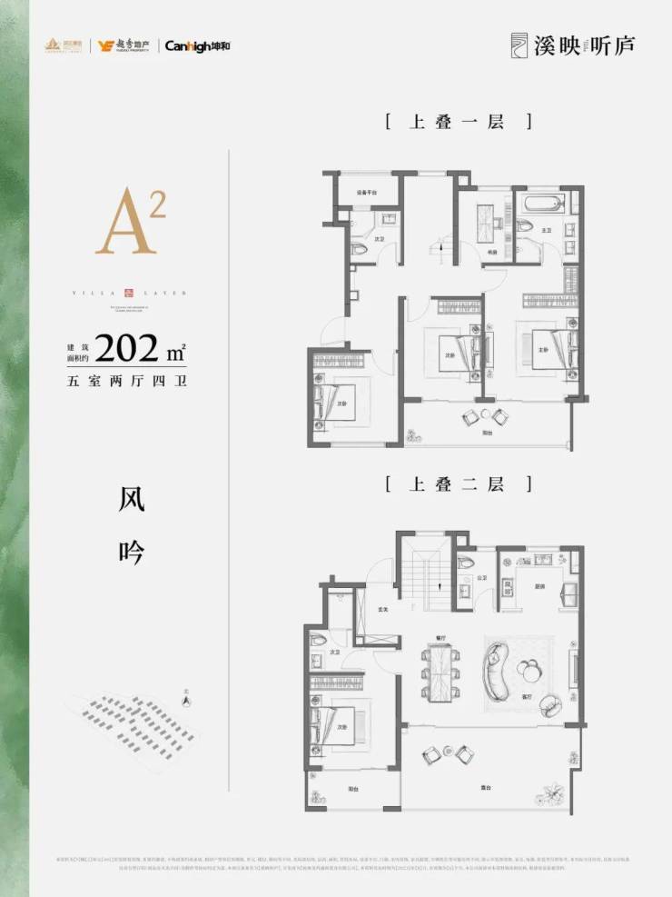 上叠主力户型建面约202-205-225方,全都是五房配置,基本总价在1000万以内。