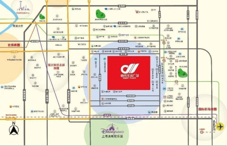 地纬生活广场北邻华夏路、中环高架路,距高架入口不到千米,距浦东国际机场车程约12分钟,距迪斯尼乐园车程约10分钟,距杨浦大桥车程约18分钟,距南浦大桥车程约20分钟。
