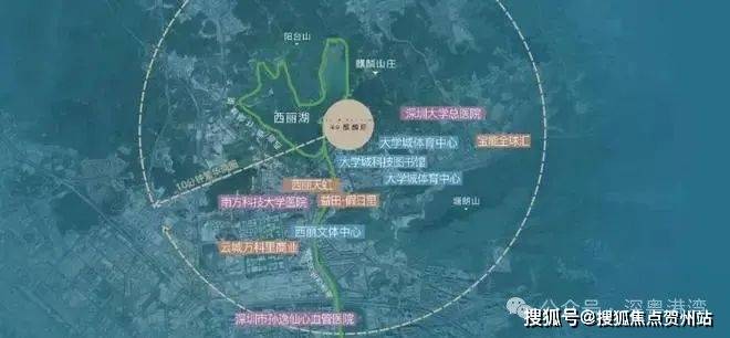 北面举步一线西丽湖,观浩淼湖水一碧如镜;南观大学城人文景观,一览无余;