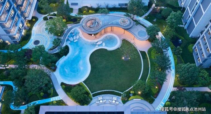 景观不仅是观赏的艺术,更是赋能美好生活的载体。宁波和颂望悦作为一个全年龄段的社区,真正做到了“适老适幼”。超引力客厅既是社交空间,也是亲子乐园。主体双层廊架,一层用于会客,一层用做儿童活动,中间位置配有约280㎡大型戏水池,营造家庭互动与儿童成长共融的活动空间。