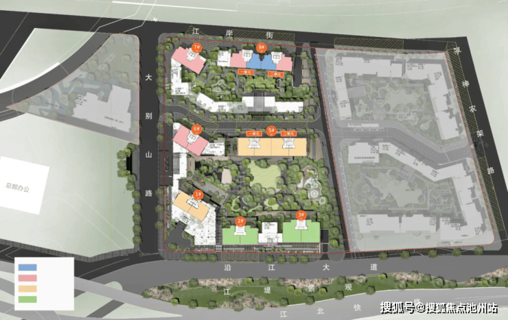 武汉城建启元坐落于江岸街 1 号,地理位置得天独厚。项目距离长江仅约 100 米左右,是名副其实的一线临江楼盘。其一期规划独具匠心,7 栋住宅巧妙地分置于南北两个地块,中间由公共通道自然隔开。南侧地块的 5 栋楼与北侧地块的 2 栋楼,布局错落有致。尤其是最南向的 3 栋楼,拥有无高层遮挡的一线观江视野,住宅楼栋面江由低到高依次排布,这