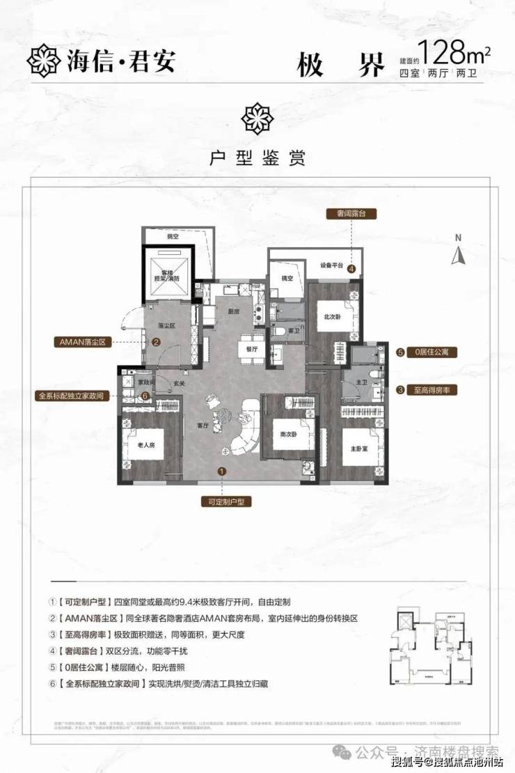 总体来看,总价300-400万左右可以考虑海信君安128平、143平四面宽精装小高层,这也是项目的主力户型;500万左右可以选择178平户型;228平的大平层占比较少,适合500万以上的高端改善。