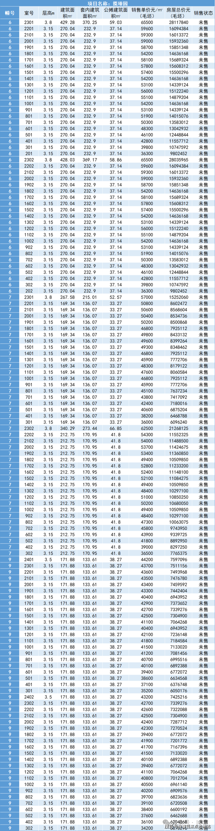三期住宅:毛坯均价45830元/㎡