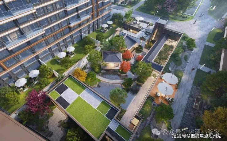 社区以门、庭、堂、院为核心展开, 配以社区仪门、高宅大堂、礼宾庭院、地下车马厅四重迎客,将私密感与仪式感巧妙融合,是对来访者的尊重,更是对主人的身份昭示。礼宾庭、中央庭、转折景庭、社区院落、团间院落、私家院落, 三庭三院景观系统, 用现代设计重新演绎传统中式的多层次庭院美学