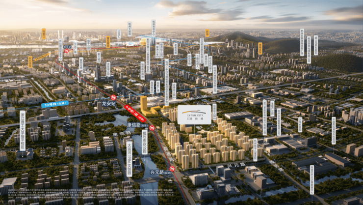 首先,最大的区别在于滨纷城是一个“双地铁口”上盖项目,横跨了地铁9号线兴元路站(在建)、康信路站(在建)两大站点,这在之前开发的TOD项目中从未有过。