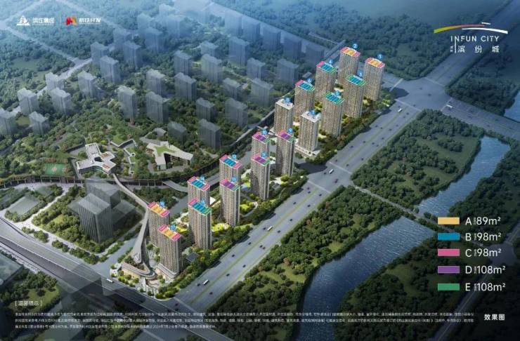 滨纷城总建面约63万㎡,融合了居住、公园、商业、办公、学校等五大业态,规划有公园、商业、邻里中心、双幼儿园、九年一贯制学校等复合内容。通过联动周边城市资源,项目旨在构建一个面向青年的缤纷生活场,为居民提供一站式的生活体验。