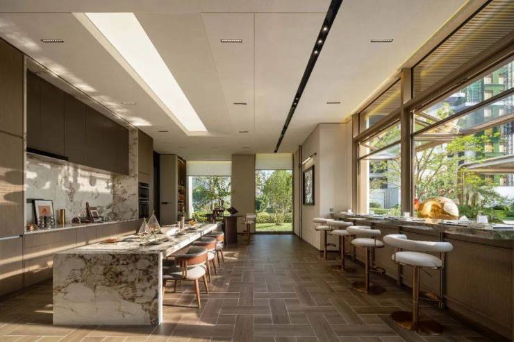 在外立面上卷出颜值新高度,项目南向铝板、局部金属格栅、部分涂料等,还是经典9号库金色,同源滨江海岸系的金色铝板,远远一看尊崇感油然而生,年轻人也值得拥有好房子。