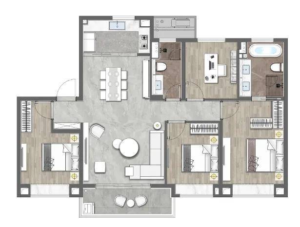 约99-142㎡3-4房户型满足不同家庭成长所需。