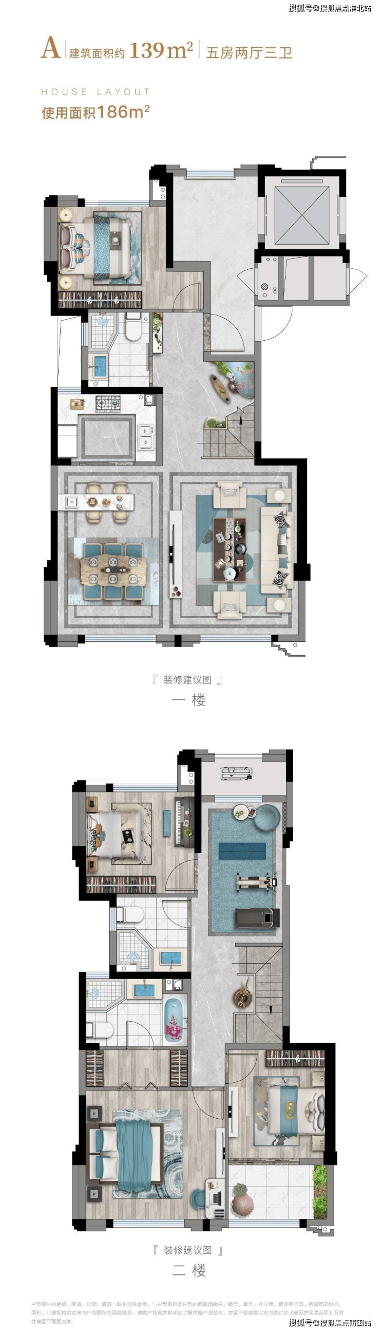 多功能大五房:精研全龄段生活需求,多功能分区,打造各具特色的私密生活空间;