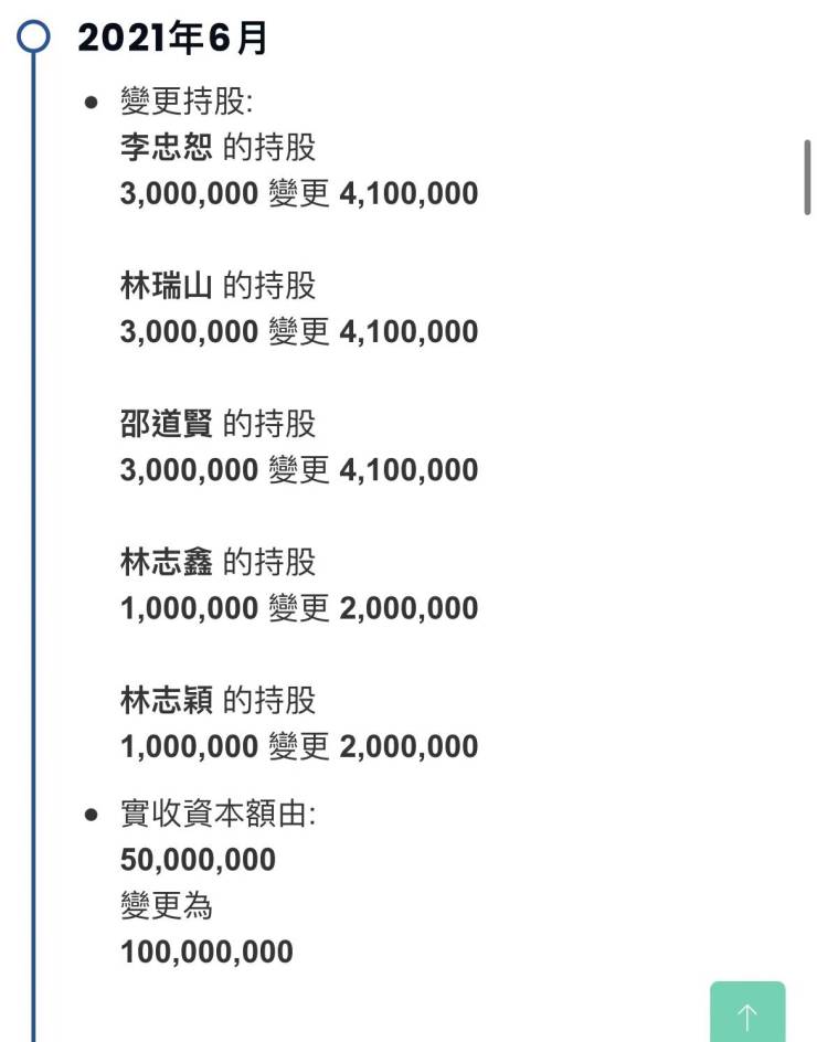 据工商资料显示,林志颖和弟弟林志鑫目前是璞亿建设的董事,该公司隶属于台湾璞园建筑旗下。2018年时兄弟俩各投资1000万新台币,分别占100万股,而后在2021年6月,两人各增持到200万股,并列为公司第四大股东。