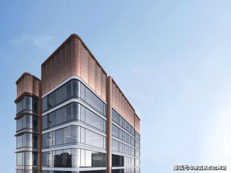 它是按照黄鹤楼飞檐弧度,以“风帆”为概念,采用紫铜色穿孔铝板演绎,不仅造型大气优雅,而且当晨昏阳光映射江面产生天色变化时,住宅楼的外立面也将受此渲染,形成江天一色的效果。
