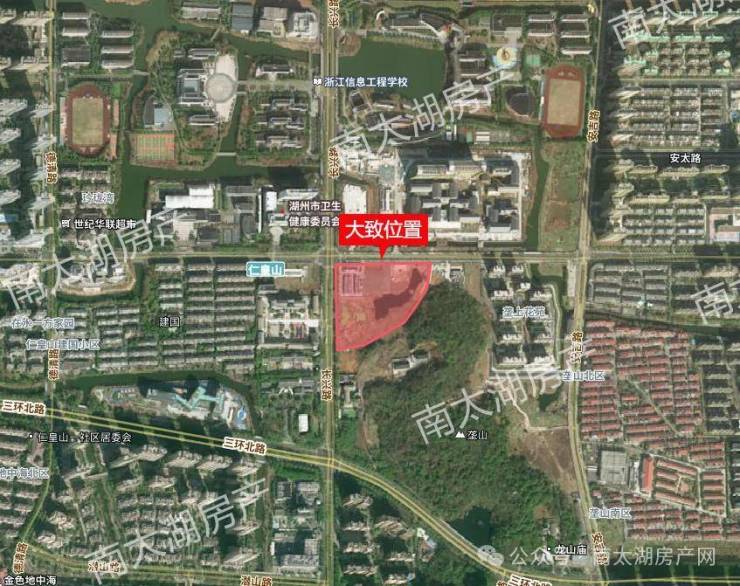项目位于湖州仁皇山仁北单元,北临青太路,东侧和南侧靠垄山,西侧临长兴路。