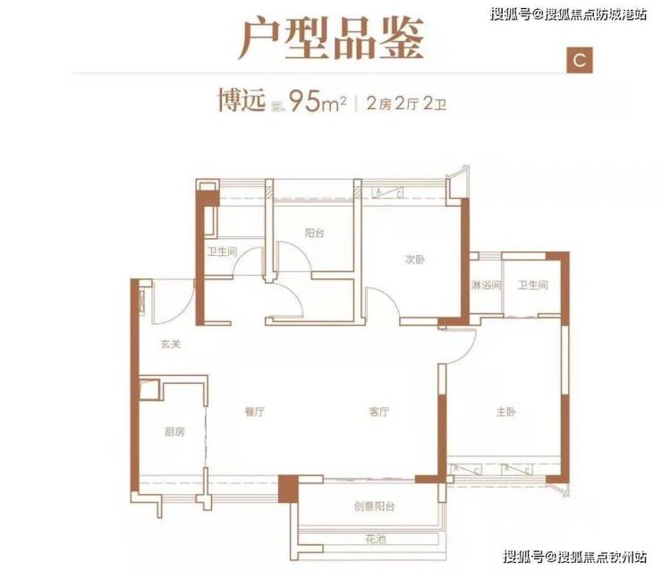 95㎡的2+1户型为南北对流的户型,布局也非常方正,横厅设计,有入户花园。四开间朝南,不仅保证通风和采光,还能直望华南理工大学校园风景。