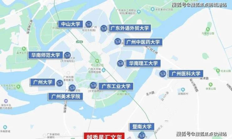 越秀·星汇文玺位于国际创新城,即大学城二期,左临华工右靠暨大,双211高校环绕,12所高等学府在旁,同时是广州科创中轴,与南大干线经济带交汇处。