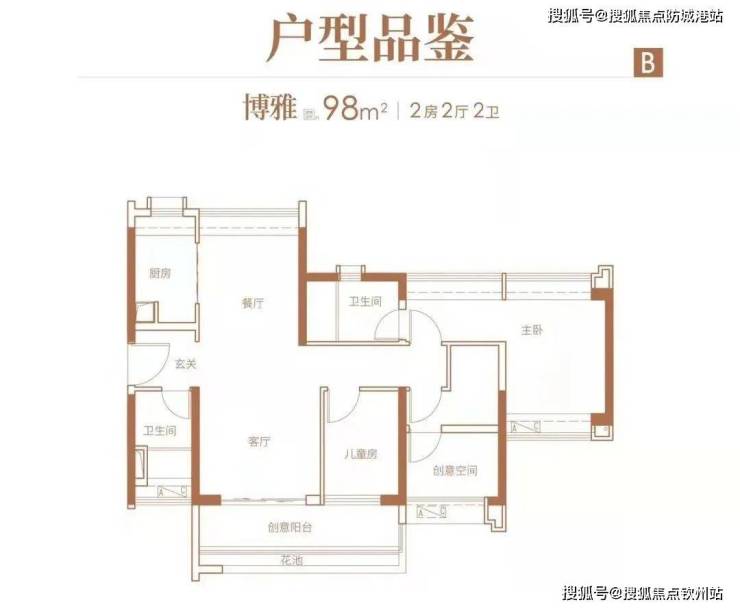 98㎡的2+1房为东南向户型,格局也非常方正,做到南北对流,主阳台约6米宽,同样可看华工校园。此外,三个卧室均朝南,主卧带双飘窗设计。