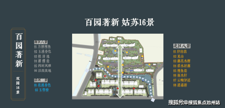 项目取法姑苏百园,打造“一轴一环两园十六景”的园林格局。南区借鉴可园“一泓池水”的精致典雅,打造方塘观鱼、玉溪春色等六景;北区取意沧浪亭的野逸疏朗,形成印沧浪、碧水环廊等八景。