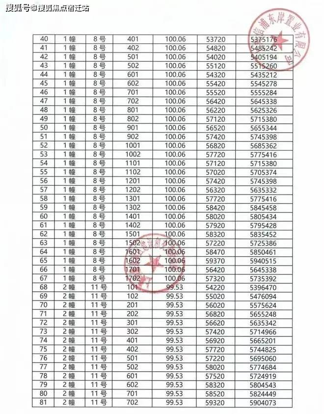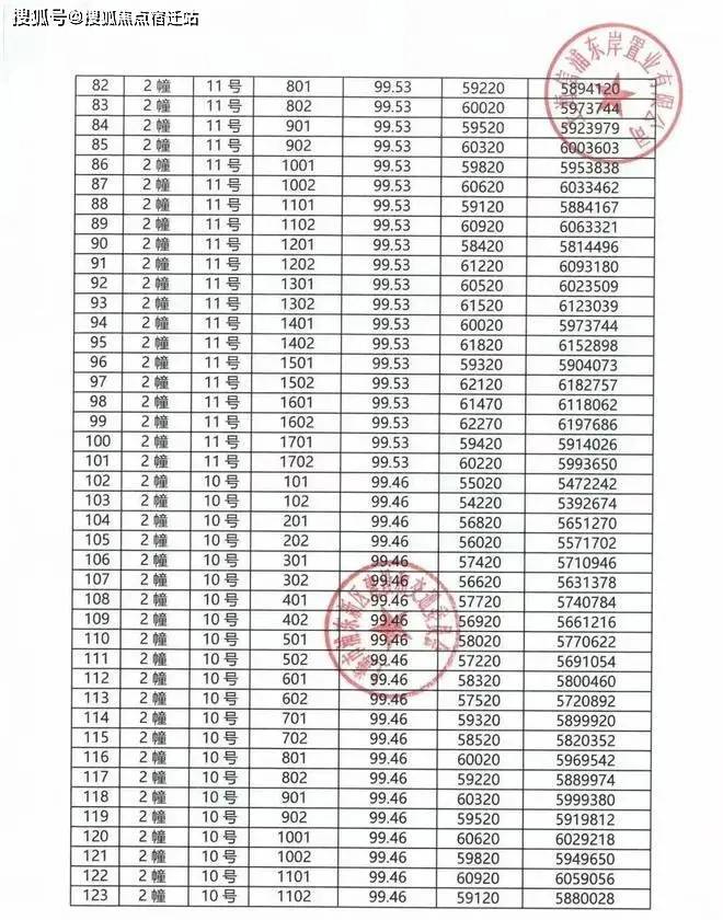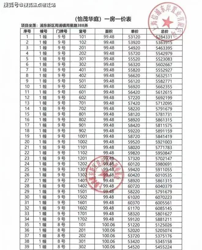 一房一价表: