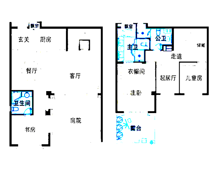 一二层叠拼户型:建面约170㎡