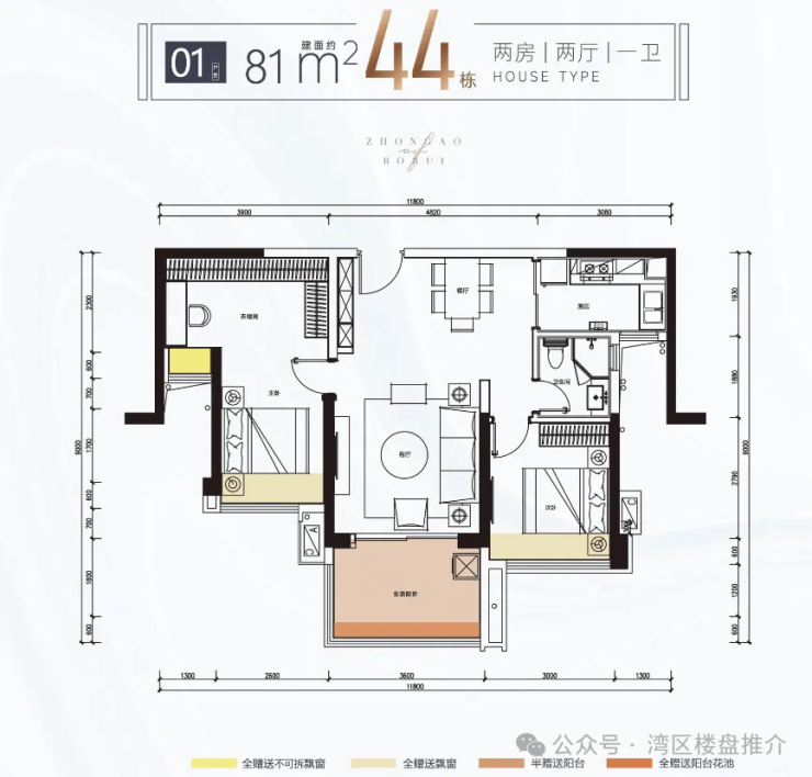 44栋 81㎡(朝南)、89㎡(朝北)、120㎡(南北)
