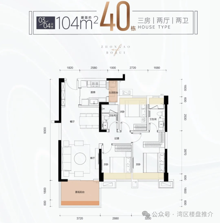 户型面积:40 / 41栋 104㎡(朝南) 118㎡(南北)