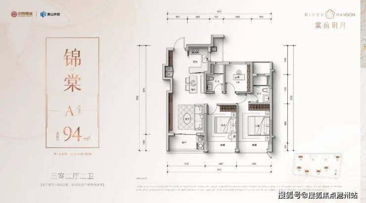 建面约103方三房两卫: