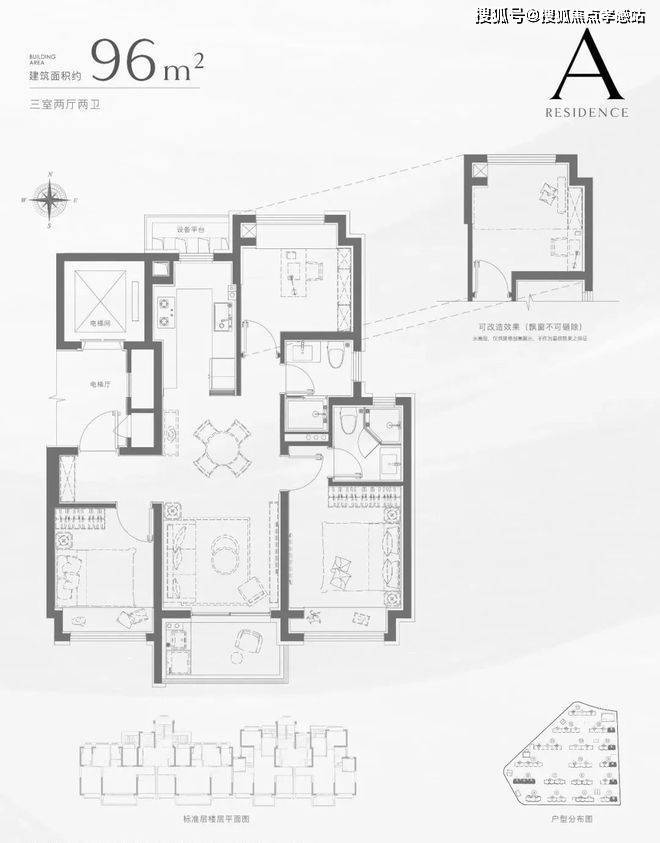 建筑面积约96㎡3房 经典飞机户型 精致进阶