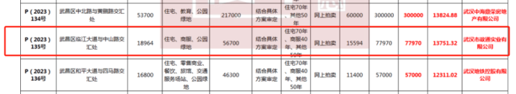 据悉,该项目就是去年12月26日,武昌国资武汉市政通实业有限公司竞得的P(2023)135号地块。