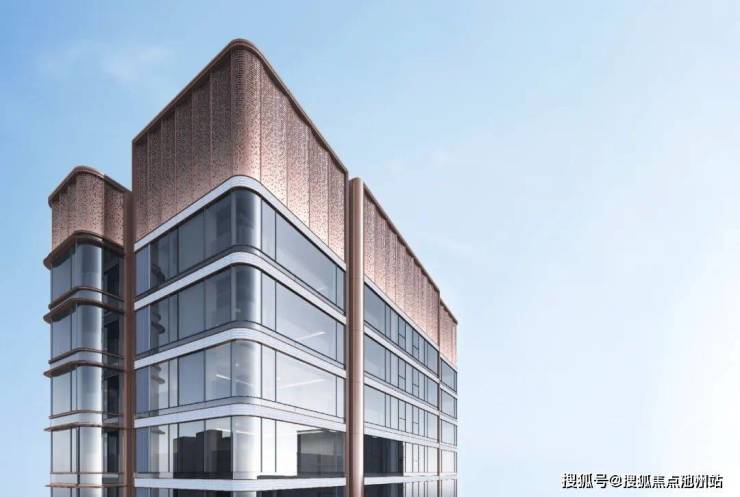 外立面设计上,采用的是鎏金冠冕公建化外立面,以对称美学+极简玻璃幕墙刻画恢弘气势与通透视觉。