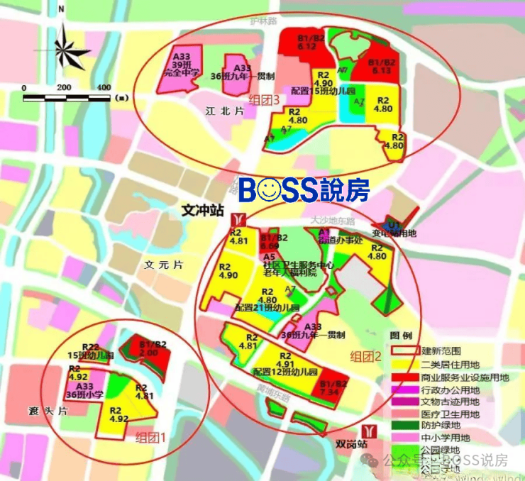 文冲东旧改分为三个片区:渡头组团,文元组团,江北组团