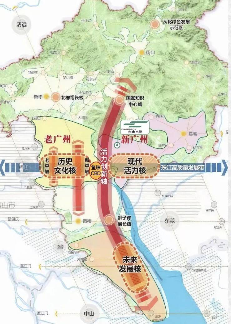 而未来方洲所占位的轴心3.0——活力创新轴,作为粤港澳大湾区100公里“黄金内湾”的北顶点,将“新广州”推举到大湾区的国际视野,成为代表广州走向世界舞台的名片。
