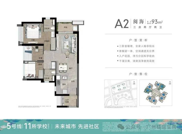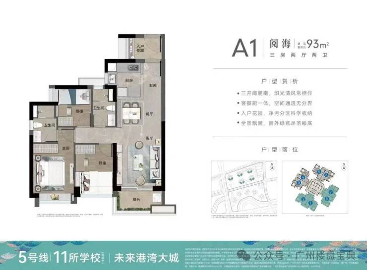 阅海组团紧邻公园,紧邻学校、酒店,也是万科黄埔新城最早开盘的户型,目前已经处于现楼状态,放款即可收楼,该组团只有93平三房一个户型。