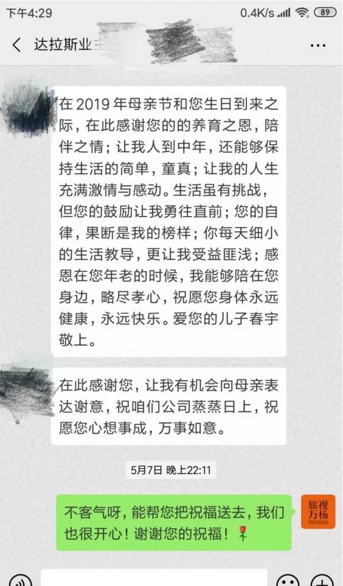 为感谢新老业主对旅视万杨的厚爱,庆祝海湾新城一期、二期、三期清盘,在母亲节来领之际,旅视万杨为各位业主献上一份大礼。从5月6号报名开始,短短三天时间,报名人数超310人,同时小秘书也被业主的祝福话语深深地感动着。