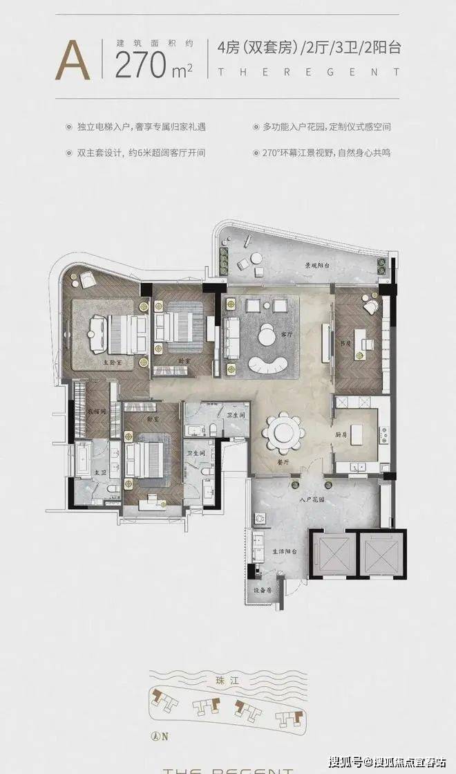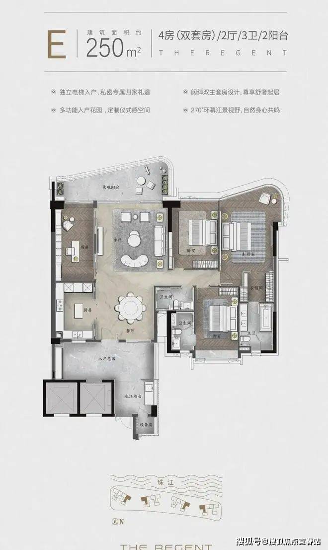 南天名苑项目位于洛溪岛的岛尖,是香港霍英东集团在广州城市中轴打造大型低密度岛尖江景豪宅,业主在室内可以近览三江汇聚的壮美江景,远眺CBD的繁华景致。